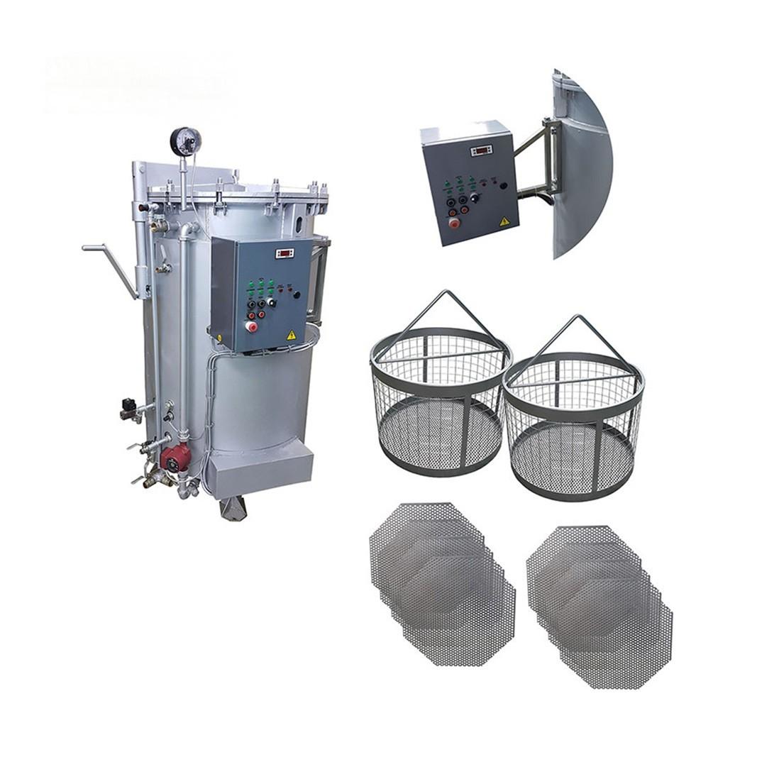 Варка и стерилизация продукта в вакуумной упаковке проводится в режиме полного заполнения корзины водой, в то время как при стерилизации продукта в стеклянных или жестяных банках можно использовать душирующий режим, при котором рабочий объем автоклава заполняется водой до нижнего уровня.